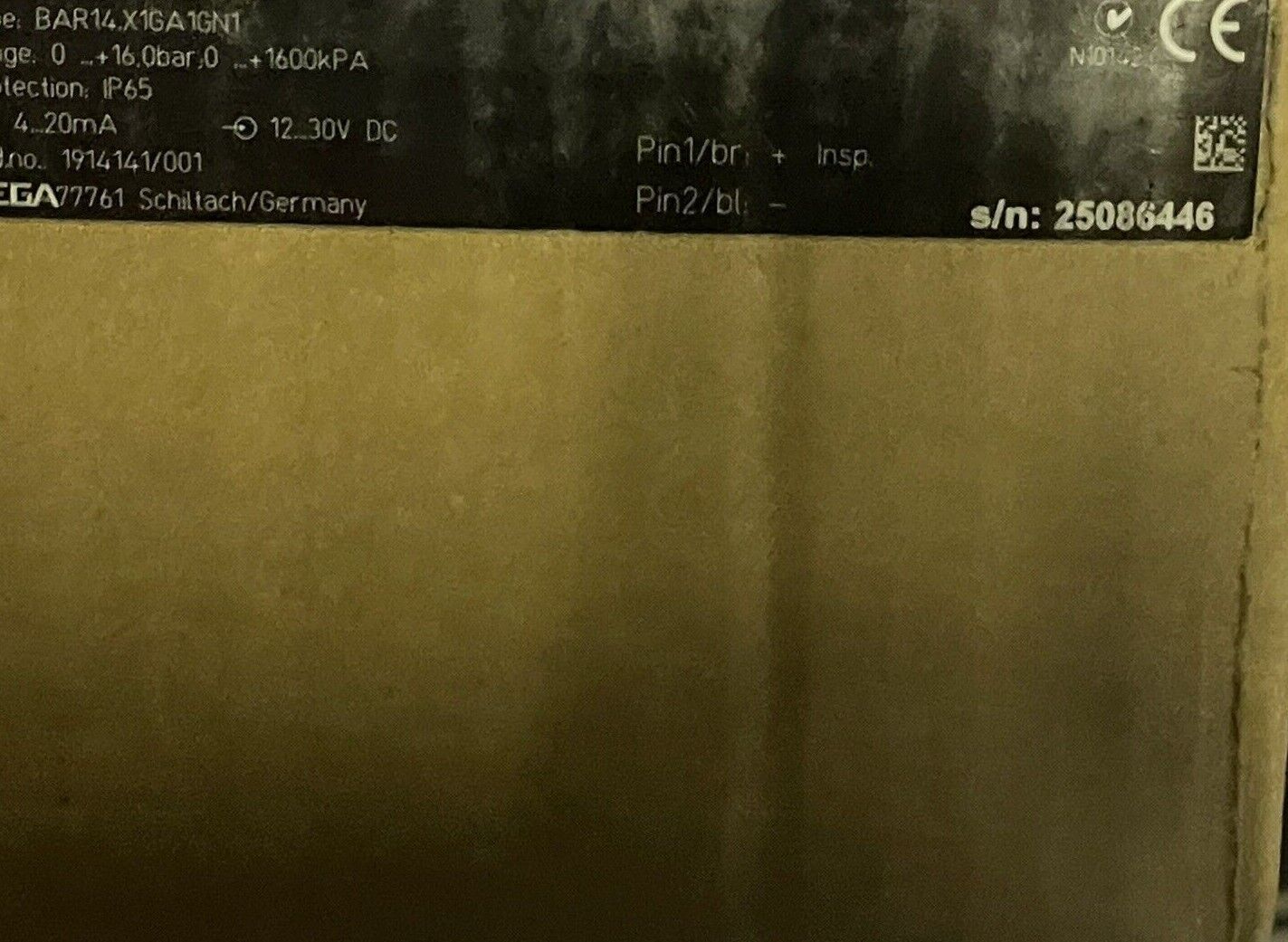 VEGA VEGABAR 14 PROCESS PRESSURE MEASUREMENT TRANSMITTER BAR14.X1GA1GN1