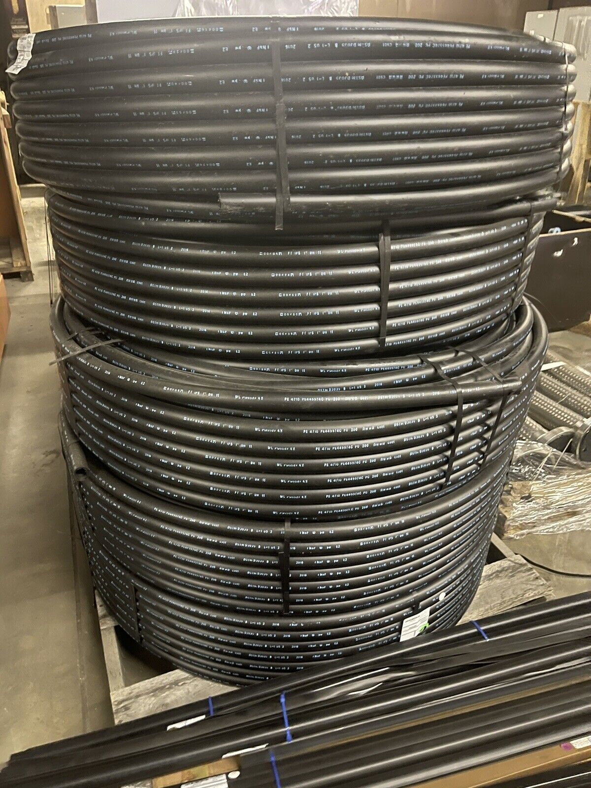SPECIFICATIONS: ---Item: WL Plastics PE4710 High Density Polyethylene Pipe ---Usage: Water and Sewer Applications ---Length: 500 Ft. ---Pipe Tubing Size: 1 in. ---Schedule Class: SDR 11